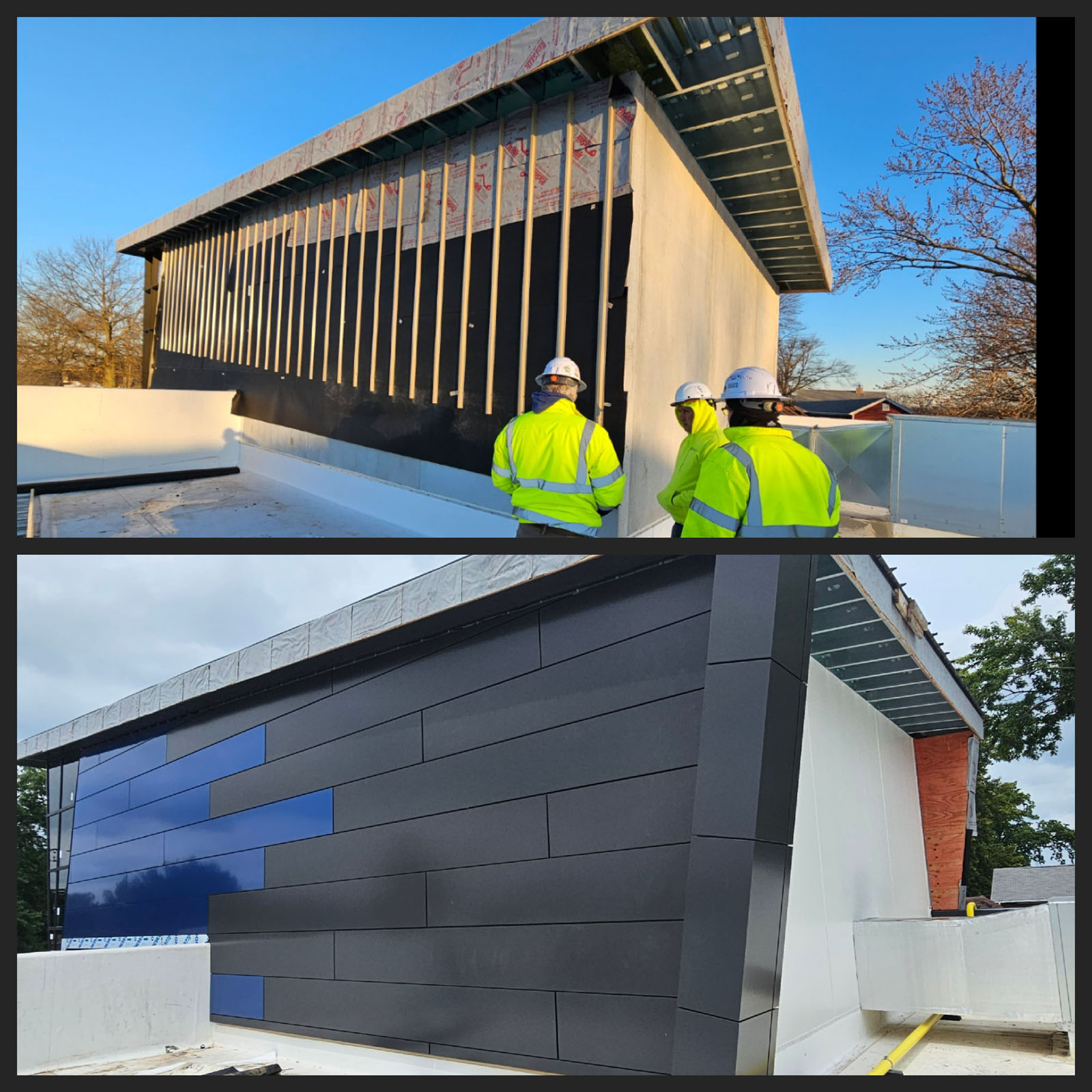 Every portion of the ACM installation incorporated a rain screen system, ensuring a draining back ventilated assembly for optimal performance and longevity. This included the application of ACM on angled surfaces and the fabrication of custom ACM fascias, adding a unique architectural dimension to the building.