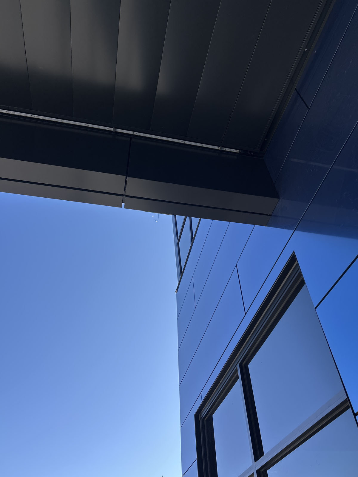 To ensure an overall aesthetic great look on the building, we also fabricated custom flashings to seamlessly tie our ACM into the glass system.