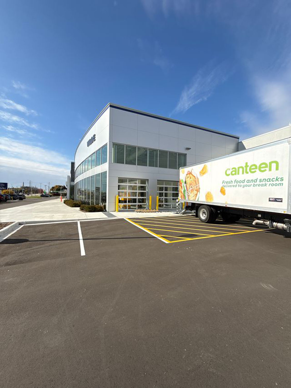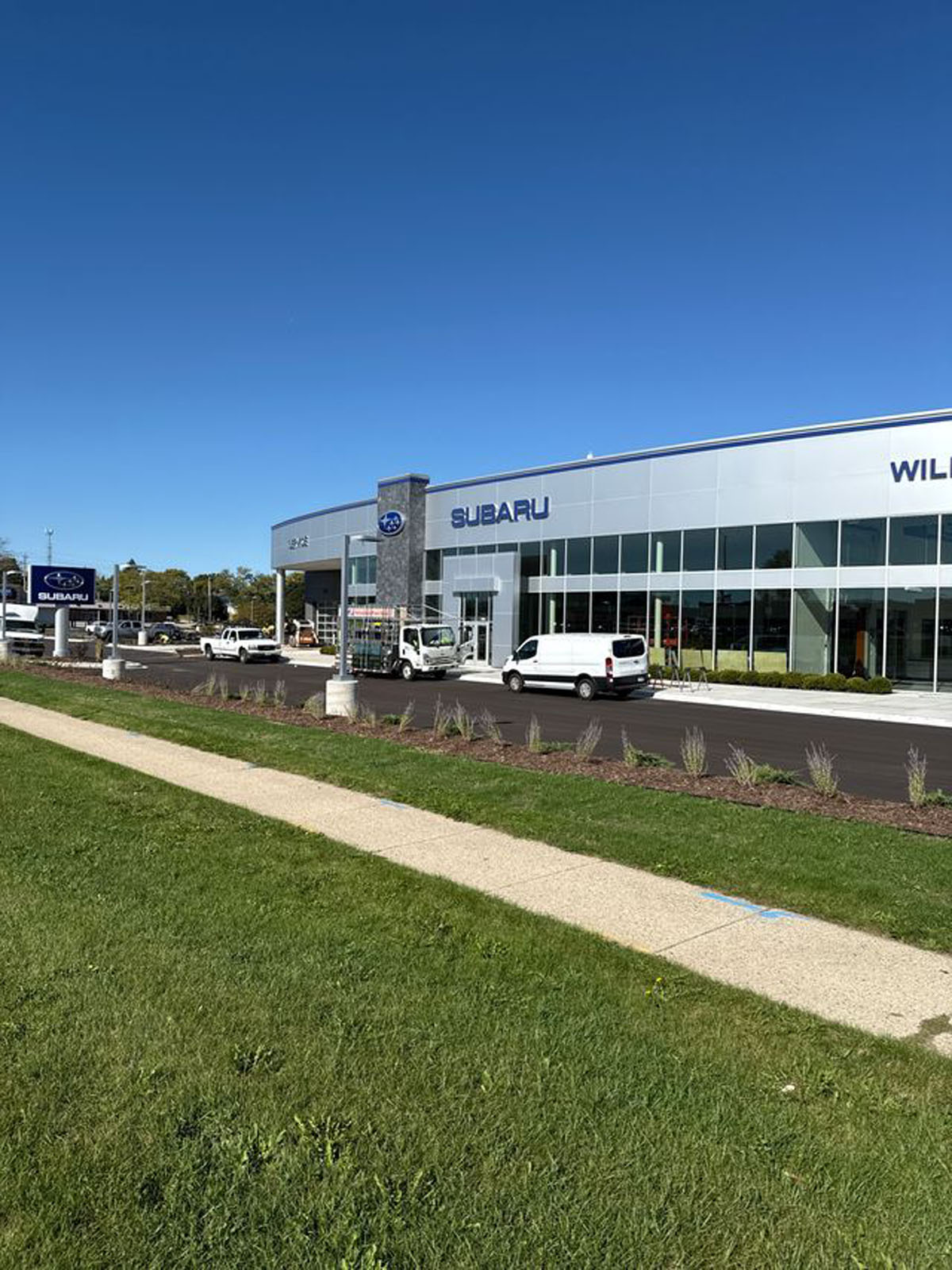 At this Subaru dealership in Waukesha, Wisconsin, we installed ACM panels paired with corrugated metal to achieve a modern, polished aesthetic that enhances the building’s presence.